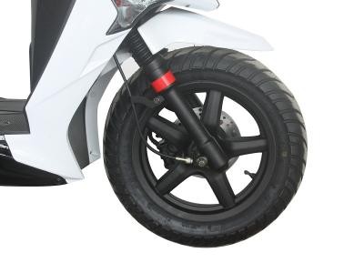 Automatic transmission, 150cc air cooled single cylinder four-stroke engine, electric/kick hybrid start, front and rear disc brakes, and CDI ignition system.