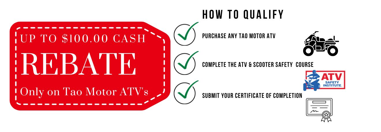Customers, please check Tao Motors training course ATV & Scooter Safety &ATV Safety Alert for more information contact us or any local dealer or call (888) 908-3816 Tao Motor Inc.
